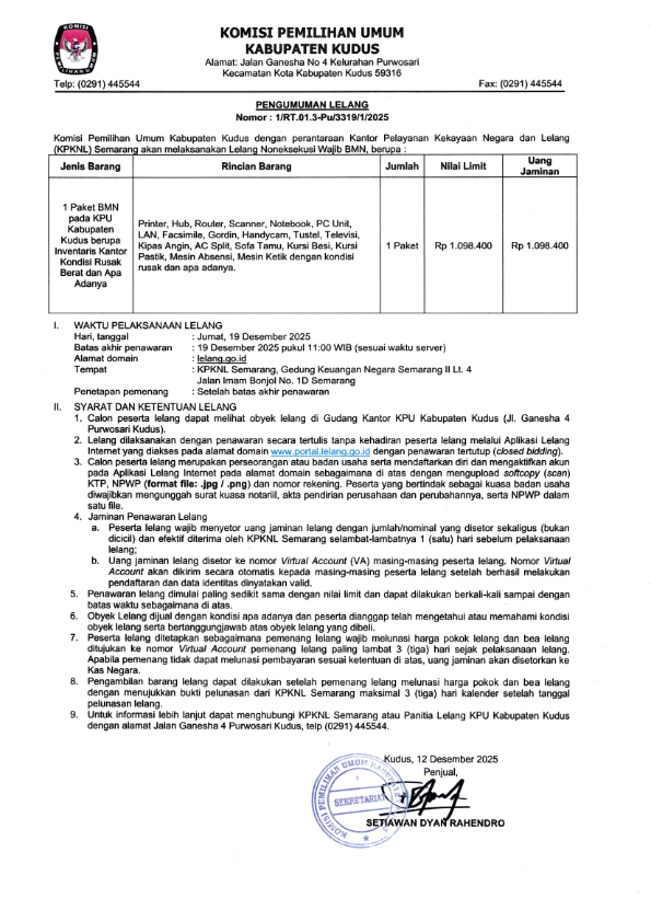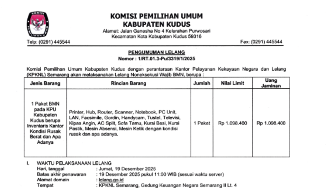 PENGUMUMAN LELANG BARANG MILIK NEGARA (BMN)