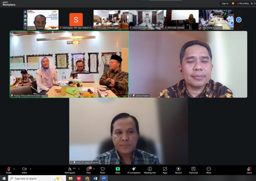Kudus – Komisi Pemilihan Umum (KPU) Kabupaten Kudus mengikuti kegiatan rutin Kamis Sesuatu yang diselenggarakan oleh KPU Provinsi Jawa Tengah pada Kamis (22/1). Memasuki seri ke-XXXVI, kegiatan ini mengangkat tema “Putusan Mahkamah Konstitusi: Antara Keadilan Prosedural dan Keadilan Substansial”.