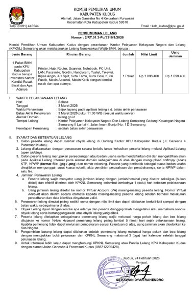 PENGUMUMAN LELANG BMN