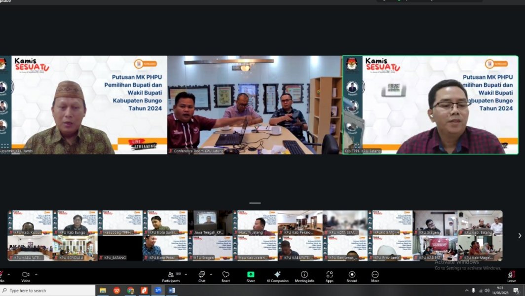Pada Kamis (14/8), kegiatan rutin Divisi Hukum KPU Provinsi Jawa Tengah menghadirkan tema “Putusan Perkara Nomor 173/PHPU.BUP-XXIII/2025 PHPU Bupati dan Wakil Bupati Bungo Tahun 2024”. Sebagai bagian dari proses pembelajaran, KPU Kabupaten Kudus turut hadir mengikuti agenda tersebut.