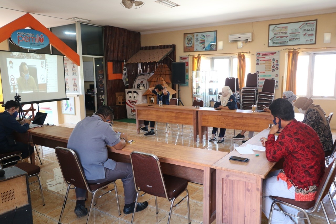 Ketua dan Anggota KPU Kabupaten Kudus Divisi Hukum dan Pengawasan, Sekretaris beserta Pejabat Struktural Sekretariat KPU Kabupaten Kudus mengikuti Bimbingan Teknis Pengendalian dan Penilaian Resiko dalam Sistem Pengendalian Intern Pemerintah, Kudus (25/8).