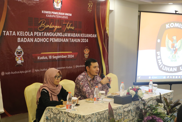 KUDUS - KPU Kabupaten Kudus melaksanakan Bimbingan Teknis Tata Kelola Pertanggungjawaban Keuangan Adhoc Pemilihan Tahun 2024, Rabu (18/9).