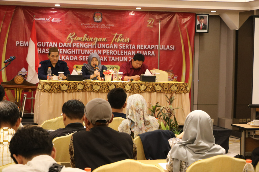 KPU Kabupaten Kudus menyelenggarakan Kegiatan Bimbingan Teknis Pemungutan dan penghitungan Suara serta Rekapitulasi Hasil Penghitungan Perolehan Suara Pilkada Serentak Tahun 2024 yang bertempat di Hotel @hom Kudus. Turut hadir dalam kesempatan tersebut, Anggota KPU Kabupaten Kudus, Panitia Pemilihan Kecamatan (PPK) se-Kabupaten Kudus dan Panitia Pemungutan Suara (PPS) Desa Keramat, Selasa (5/11).