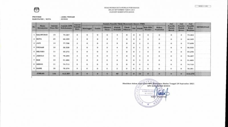DAFTAR PEMILIH PERUBAHAN PERIODE SEPTEMBER 2021 Sabtu, 01 Januari 2022 20:22 346 DOWNLOAD LAMPIRAN Bagikan: Dilihat 346 Kali.