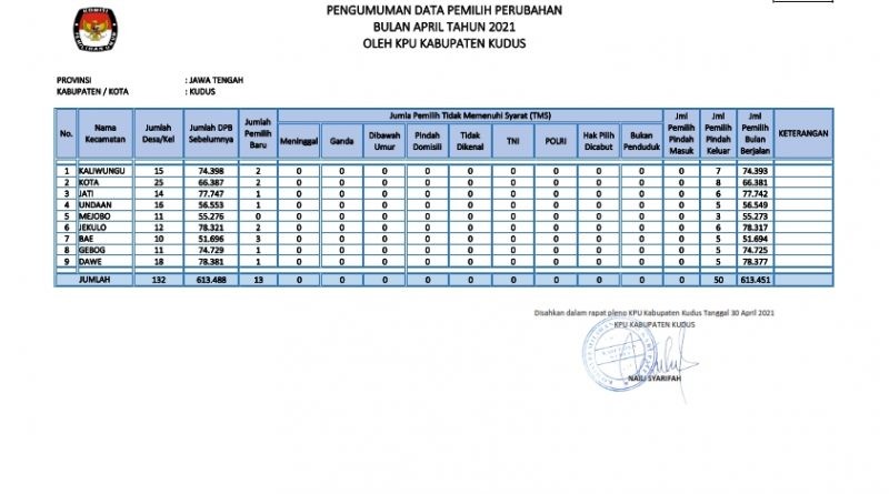 DATA PEMILIH PERUBAHAN BULAN APRIL 2021 Sabtu, 01 Januari 2022 20:22 360 DOWNLOAD DOWNLOAD LAMPIRAN Bagikan: Dilihat 360 Kali.