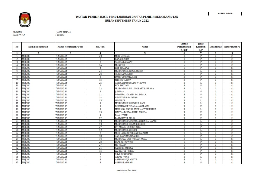 FORM A DPB SEPTEMBER 2022 Senin, 03 Oktober 2022 07:00 209 Form A DPB September 2022 bisa diunduh (disini) Bagikan: Dilihat 209 Kali.