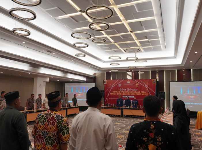 KUDUS - KPU Kabupaten Kudus melaksanakan kegiatan Rapat Koordinasi Mitigasi TPS Rawan Bencana pada Pemilu Tahun 2024, berlangsung di Hotel @hom Kudus, Selasa(16/1).