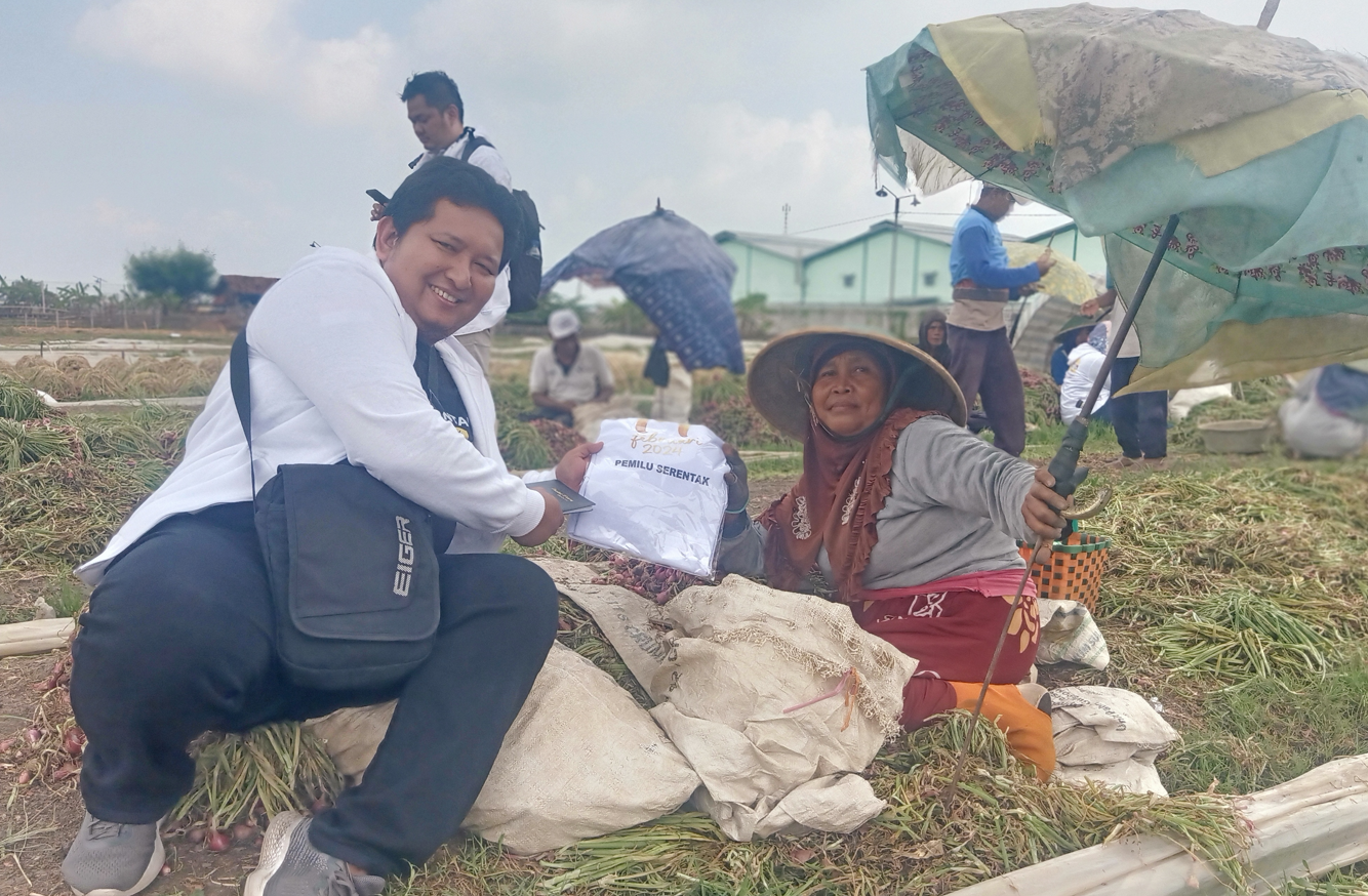 ”Saya sempat kaget, kok ada banyak orang ke sini, ternyata dari KPU. Alhamdulillah, saya jadi tahu, ternyata Pemilu digelar 14 Februari 2024 nanti,” kata Mbah Uwaidah, salah satu petani bawang yang ditemui.