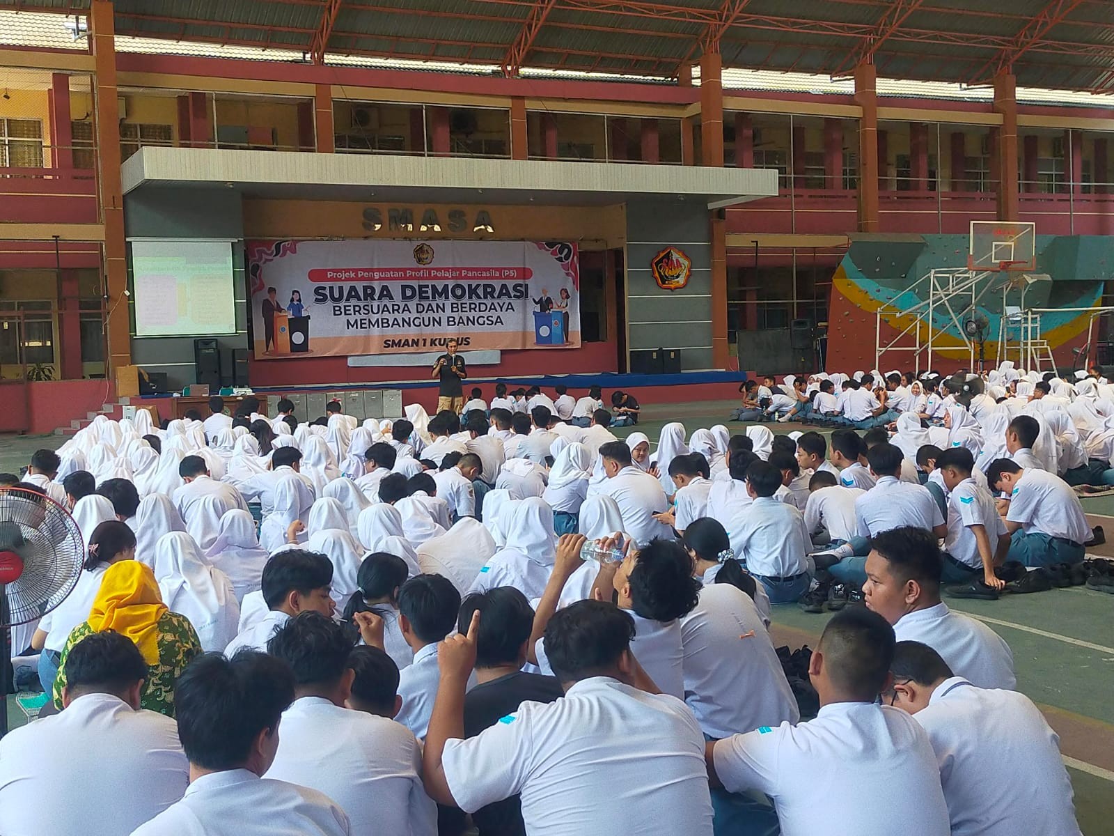 Kegiatan sosialisasi berlangsung di Halaman Indor SMA Negeri 1 Kudus dengan dihadiri peserta kelas XI berjumlah kurang lebih 420 peserta. Dhani Kurniawan selaku Komisioner KPU Kabupaten Kudus menjadi narasumber dalam program P5 di SMA Negeri 1 Kudus.
