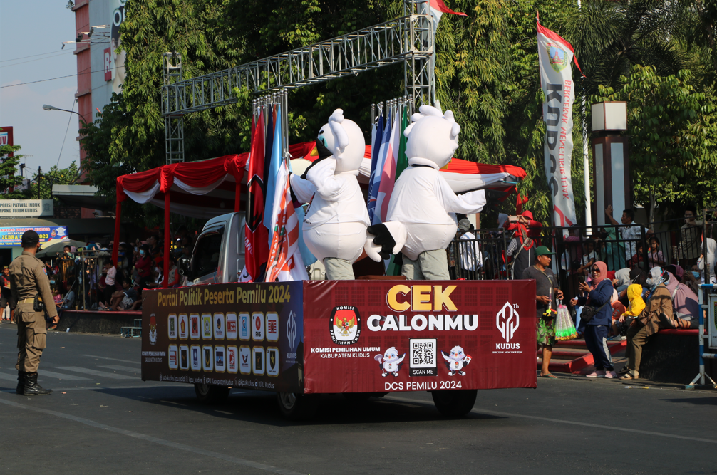 KUDUS - KPU Kabupaten Kudus ikut serta dalam Karnaval Mobil Hias yang di selenggrakan dalam rangka Hari Jadi Kota Kudus ke 474, Hal itu mendapatkan apresiasi dari Bupati Kudus, Hartopo yang hadir bersama Forkopimda beserta Sekda, Ketua TP PKK Kudus, Kepala OPD, dan pihak swasta, Senin(11/9).