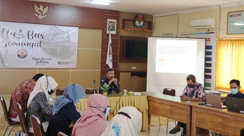 KUDUS – Komisi Pemilihan Umum (KPU) Kudus kembali menggelar Ngobar Semangat (Ngopi Bareng setiap Selasa Minggu Keempat) edisi ke-6, pada Selasa pagi, 21 September 2021. Kali ini temanya tentang Pemutakhiran Data Pemilih dan Penyusunan Daftar Pemilih, dengan narasumber Dhani Kurniawan (Anggota KPU Kudus) dan Heri Darwanto (Sekretaris KPU Kudus).