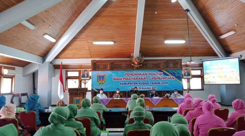 KUDUS- Perempuan mempunyai hak untuk aktif berpartisipasi di masyarakat termasuk dalam bidang politik. Kehadiran perempuan dalam dunia politik telah dibuktikan dengan adanya keterwakilan perempuan di parlemen. Namun kuota 30% keterwakilan perempuan dalam parlemen sampai saat ini masih belum terpenuhi. Pendidikan politik kepada kaum perempuan dianggap perlu untuk mengubah pola pikir mereka bahwa perempuan juga bisa menjadi bagian dari pengambilan kebijakan.