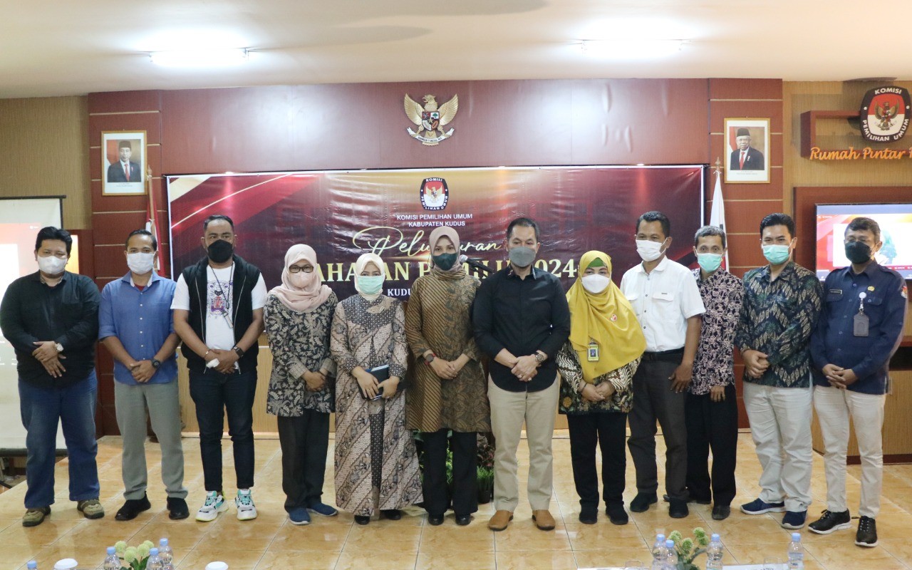 KUDUS-Komisi Pemilihan Umum Republik Indonesia menggelar seremoni peluncuran tahapan Pemilu Serentak 2024, Selasa (14/6). Sesuai amanat konstitusi bahwa tahapan penyelenggaraan Pemilu dimulai paling lambat 20 (dua puluh) bulan sebelum hari pemungutan suara. Oleh karena itu, kegiatan peluncuran ini dimaksudkan sebagai titik awal dimulainya tahapan Pemilu Serentak 2024.
