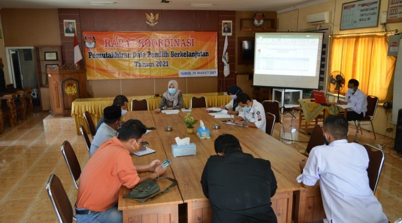 KUDUS- Dalam rangka Pemutakhiran Daftar Pemilih, KPU Kabupaten Kudus melaksanakan Rapat Koordinasi dan Rekapitulasi Daftar Pemilih Berkelanjutan Triwulan I, Senin (29/3/2020). Rapat bertempat di aula lantai 2 kantor KPU Kabupaten Kudus.