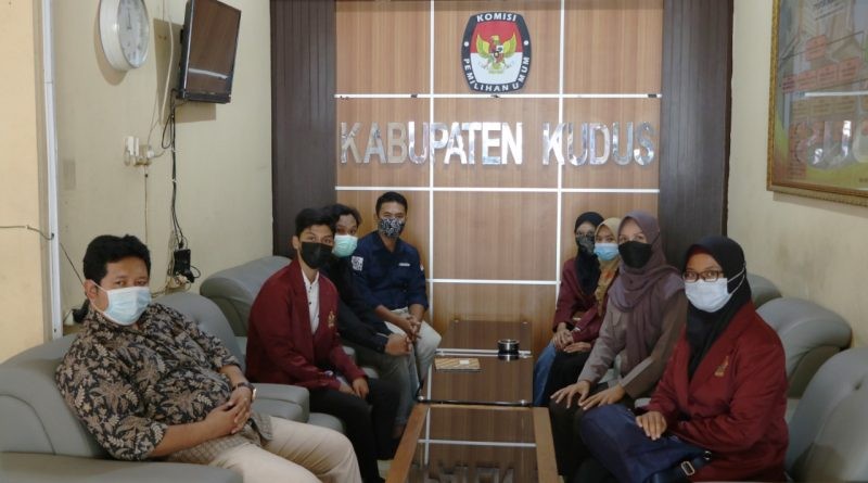 Dema Syariah Institut Agama Islam Negeri (IAIN) Kudus melakukan audiensi tentang sistem kepemiluan dengan KPU Kudus pada Kamis (18/3/2021). Kedatangan mereka disambut oleh Ketua beserta Anggota dan Sekretaris KPU Kudus.
