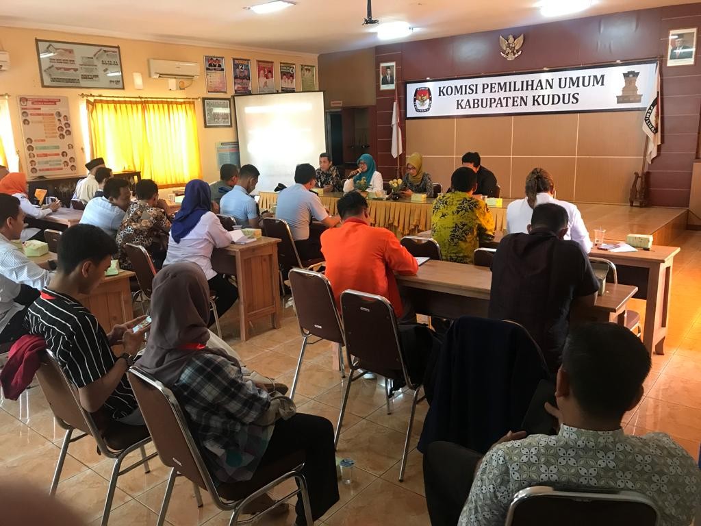 Rapat koordinasi Pemutakhiran Data Pemilih Berkelanjutan periode Triwulan II dihadiri oleh jajaran Komisioner, Sekretaris dan para Kasubbag Sekretariat KPU Kabupaten Kudus serta tamu undangan yang terdiri dari Polres, Kodim 0722, Dinas Kependudukan dan Pencatatan Sipil, Bawaslu, Rutan Kelas II-B, dan 14 Partai Politik yang terdiri dari PDIP, PKB, Partai Gerindra, Partai Nasdem, PKS, PPP, Partai HANURA, Partai Demokrat, Partai Perindo, PSI, Partai Prima, Partai Kedaulatan Rakyat (PKR), Partai UMMAT, dan Partai Buruh. (rendatin/humas)