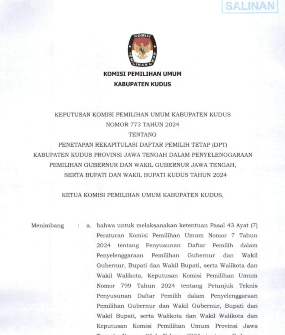 REKAPITULASI DAFTAR PEMILIH TETAP (DPT) Minggu, 22 September 2024 07:00 351 Dokumen Daftar Pemilih Tetap (DPT) dapat diunduh DISINI Bagikan: Dilihat 351 Kali.