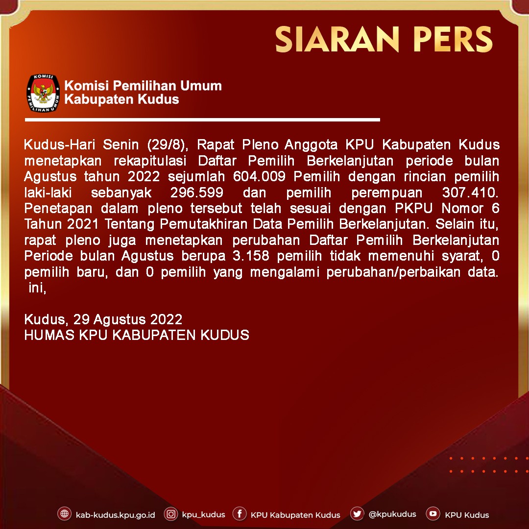 SIARAN PERS DPB BULAN AGUSTUS 2022 Senin, 29 Agustus 2022 07:00 44 Lihat Selengkapnya Bagikan: Dilihat 44 Kali.