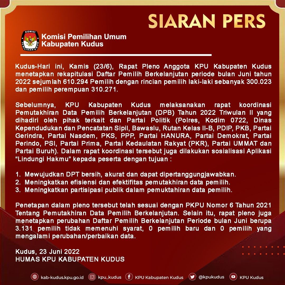 Siaran Pers Rapat Pleno Daftar Pemilih Berkelanjutan Periode Juni 2022