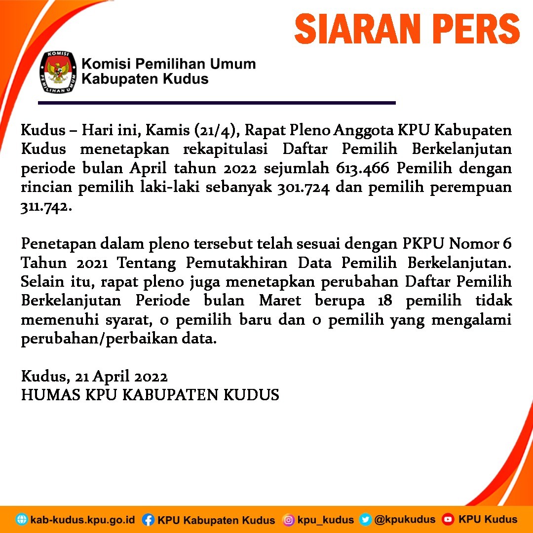 SIARAN PERS RAPAT PLENO DPB PERIODE APRIL 2022