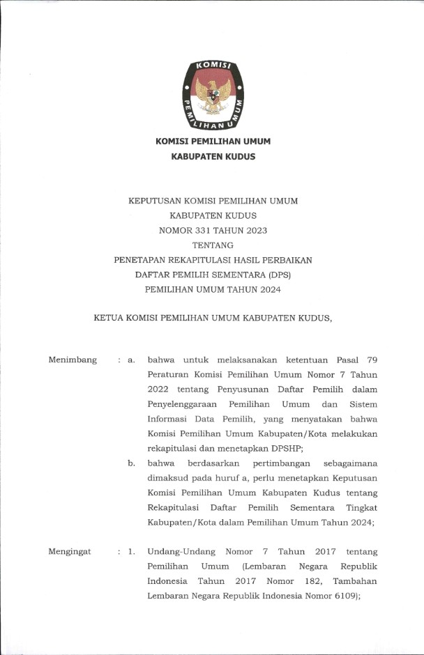 SK PENETAPAN REKAPITULASI HASIL PERBAIKAN DPS PEMILU 2024