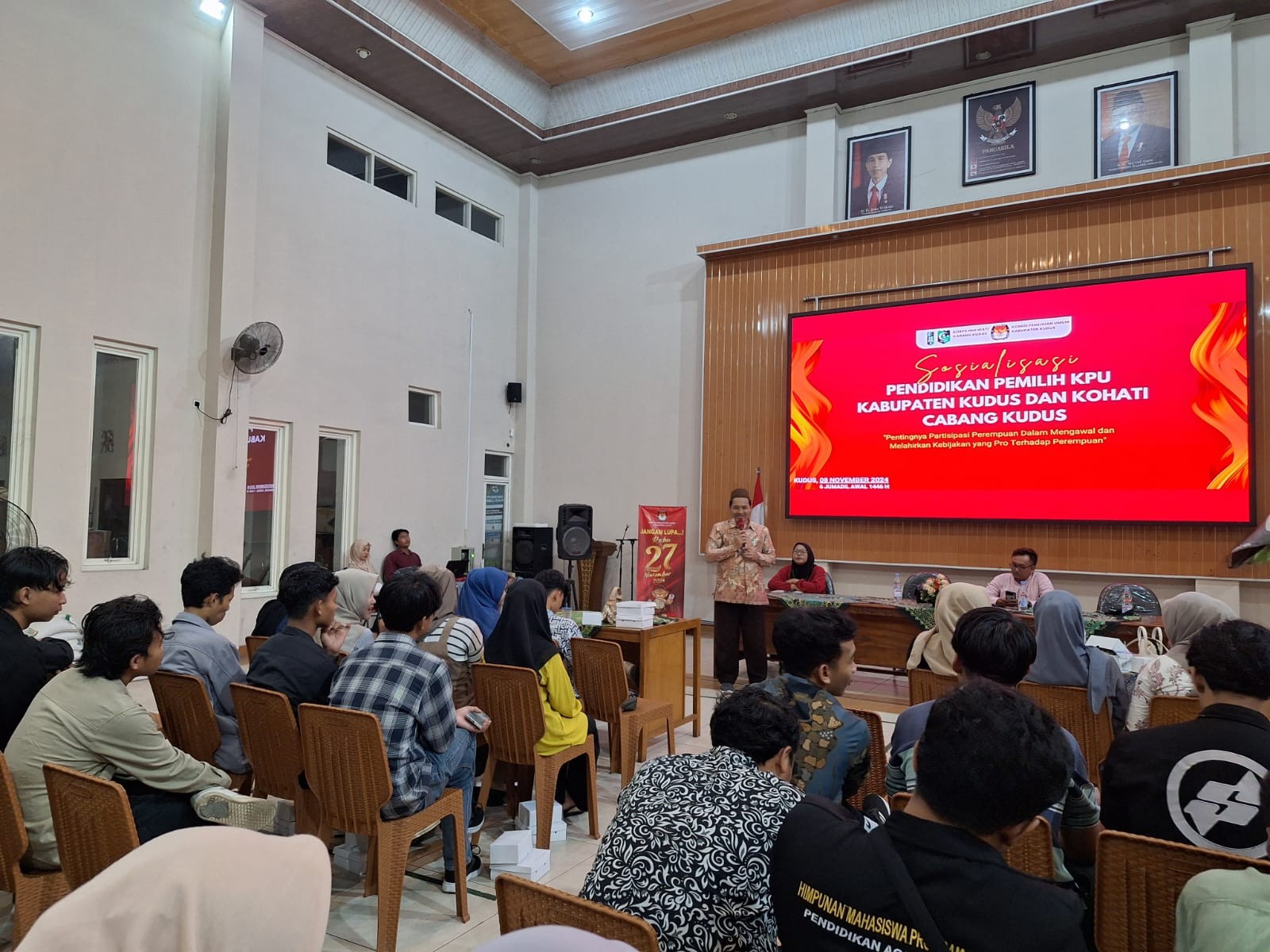 KUDUS - KPU Kabupaten Kudus bekerjasama dengan Kohati (Korps HMI Wati) Cabang Kudus mengadakan Sosialisasi Pilkada Serentak Tahun 2024. (8/11).