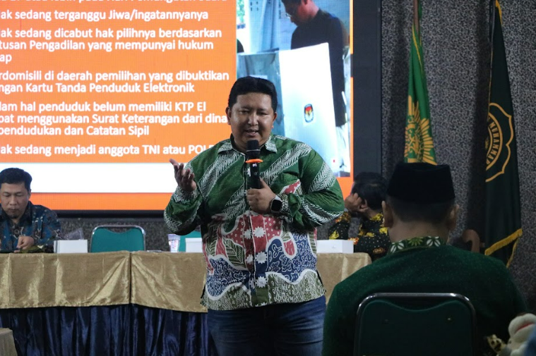 KUDUS - KPU Kabupaten Kudus menjadi narasumber dalam kegiatan Sosialisasi Pelaksanaan Pilkada Serentak bagi Peningkatan Partisipasi Pemilih kepada Anggota Muhammadiyah Kudus di Ruang Serbaguna Universitas Muhammadiyah Kudus, Minggu (20/10).